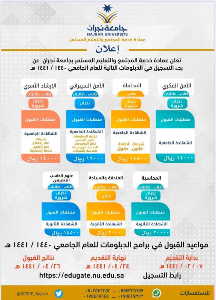 التسجيل في الجامعات On Twitter التسجيل في جامعة نجران يبدأ ١٠ شوال بنين بنات انتظام و انتساب شروط القبول و التخصصات في الصور للاستفسار Admission Nu Https T Co Nby69hjuy0