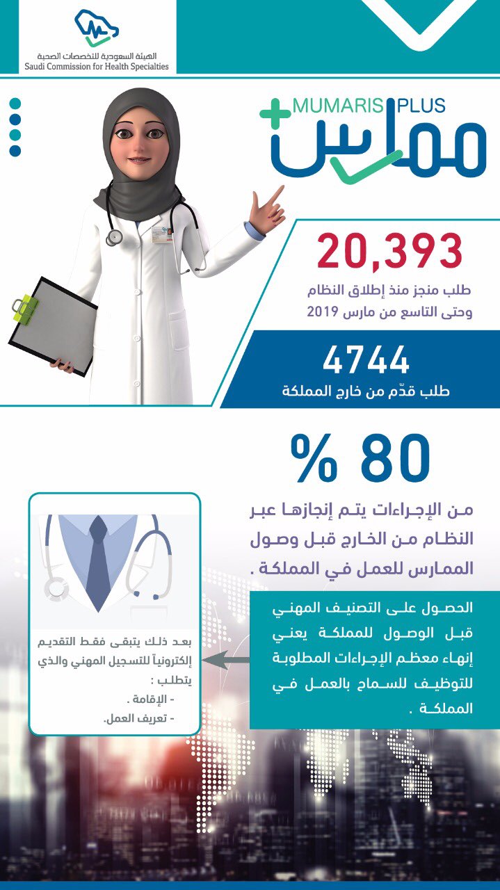 هـ يـ ئـ ة الـ تـ خـ صـ صـ ا ت الـ صـ حـ يـ ة U Tvitteri عزيزي الممارس بياناتك منقولة على ممارس بلس ويمكنك الدخول وإكمال إجراءات طلبك سعدنا بتواصلك