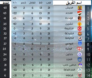 كرة القدم السورية 33 ترتيب فرق الدوري السوري للمحترفين بكرة القدم